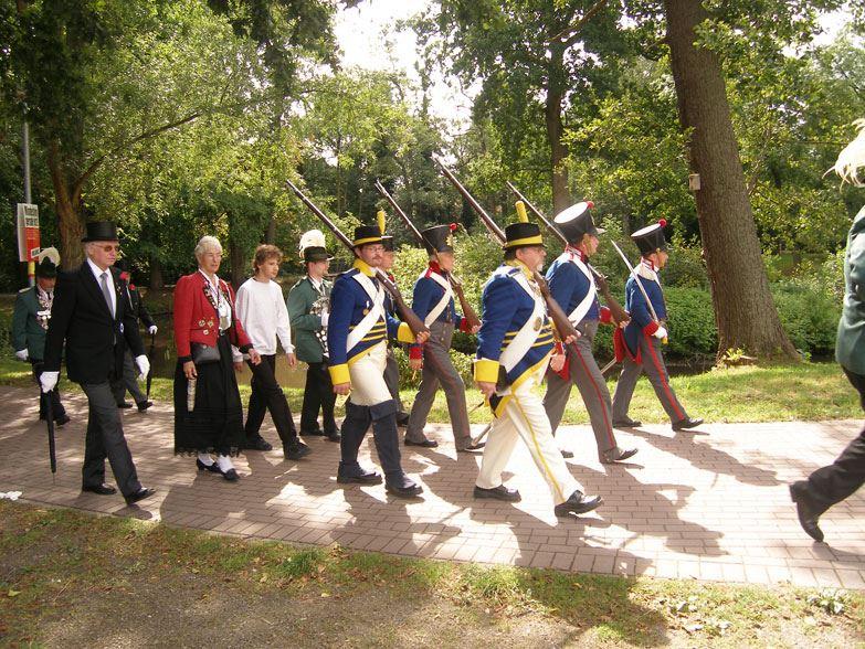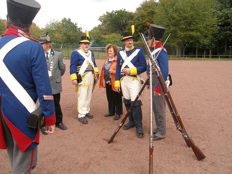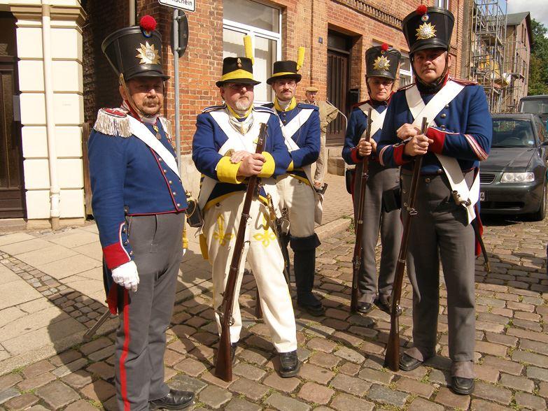 Traditionsverband des SV Hanse von 1990 e.V. (Wismar) in den historischen Uniformen des 1. Musketier-Bataillons Mecklenburg-Schwerin und der 1. Grenadier-Kompanie "Mutter Schweden".
