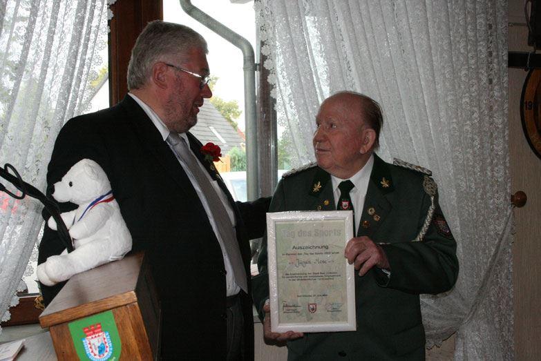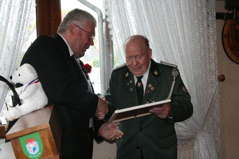 Jürgen Mose (verstorben am 16.05.2014) bekommt vom stellv. Bürgermeister Horst Möller die Anerkennungsurkunde der Stadt Bad Oldesloe für seine nahezu 40-jährige und ehrenamtliche Vereinsarbeit überreicht.