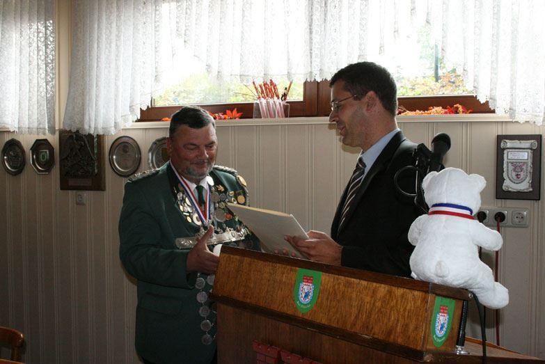 Der Finanzminister Rainer Wiegard überreicht der Gilde eine persönliche Geldspende. Dies tat er mit viel Humor. O-Ton: In diesem Umschlag befindet sich Bargeld, einen gedeckten Scheck würde man mir evtl. nicht glauben.